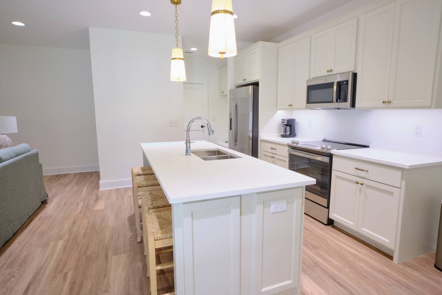 The Hideaway is a beautiful, modern newly constructed duplex home in Daphne, AL. Located between Mobile, AL and Pensacola, FL the home is also 35 miles from Gulf Shores beaches and the Gulf of Mexico! The property has 3 bedrooms, 2 bathrooms, living room, kitchen, laundry, and garage. Beautifully finished and professionally decorated The Hideaway is perfect for any group or family up to 6 people. The kitchen features custom cabinetry, quartz counters, and stainless appliances. Dogs allowed.